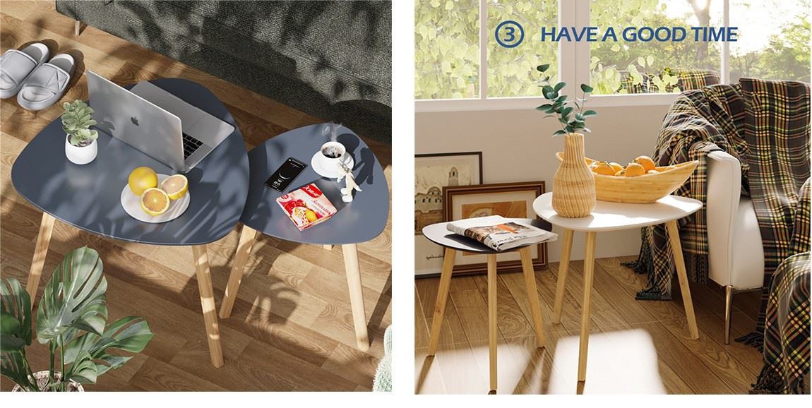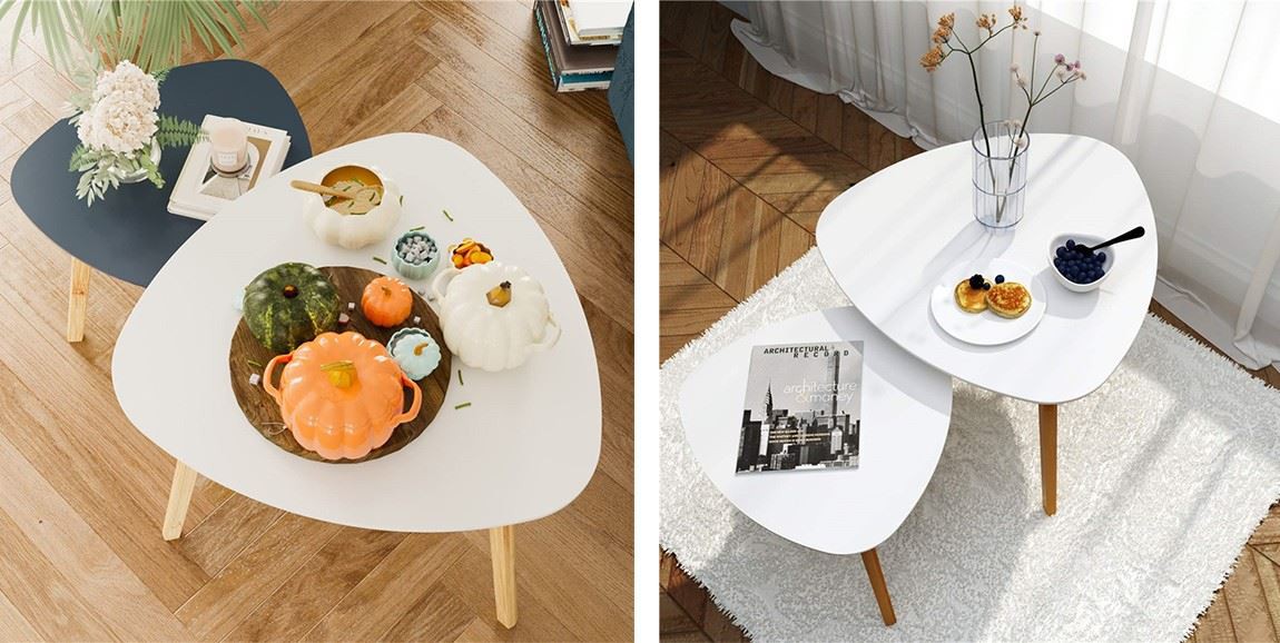 2) Sarlavha:Uchburchakli stol, 2 ta kofe stoli, zamonaviy minimalist yon stol